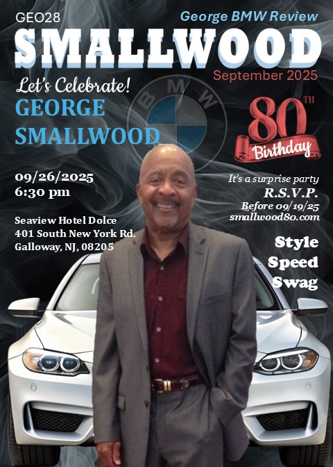 Home RSVP Home RSVP George Smallwood80th Birthday CelebrationSeptember 26, 2025 Hello Family and Friends!It’s a Surprise Birthday Party!We are celebrating George’s 80th Birthday!WHEN: September 26, 2025 WHERE: Seaview Hotel Dolce401 South New York Rd.Galloway, NJ, 08205TIME: 6:30 pmQuestions? Sheila Smallwood sheila.smallwood0324@gmail.com 1-609-442-1145 MUST RSVP BY 09/19/2025WITHOUT AN RSVP YOU WILL NOT BE ALLOWED TO ATTEND! RSVP